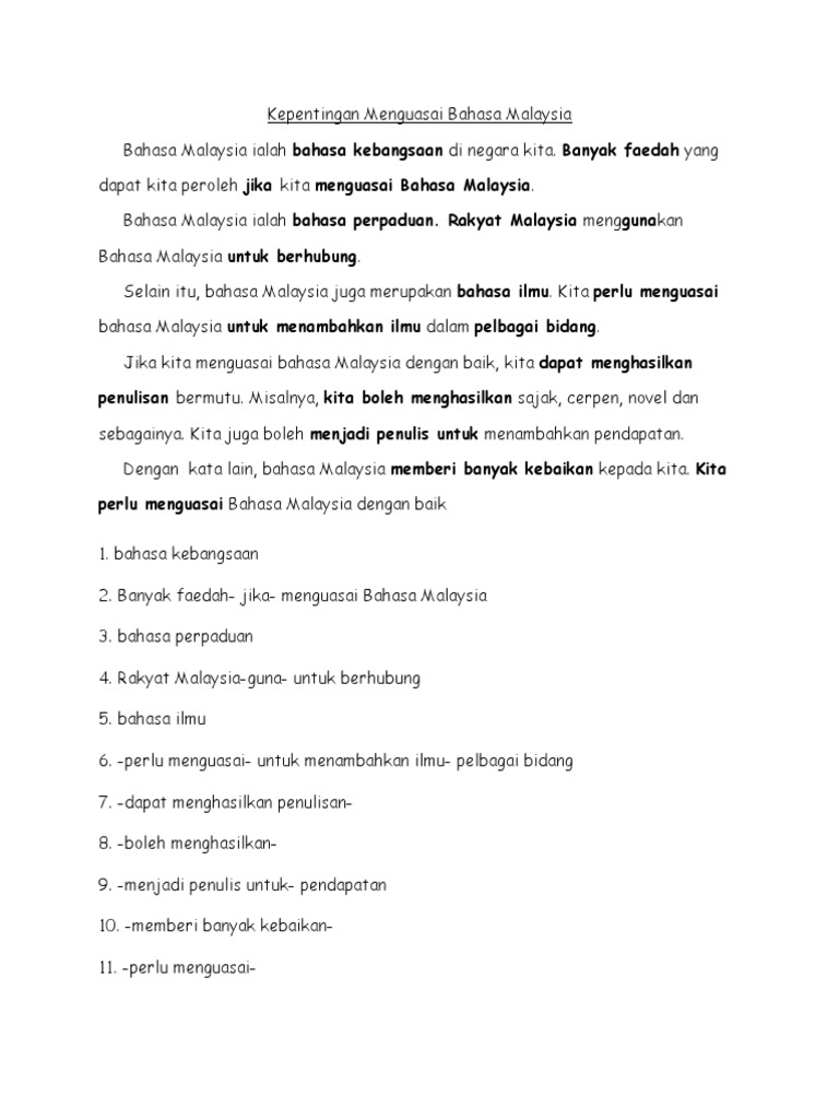 Kepentingan penerokaan pelbagai sumber menggalakkan kemajuan infrastruktur. Jika kita menguasai bahasa bahasa malaysia malaysia. Oleh itu, banyak kepentingan akan diperoleh oleh seseorang dengan menguasai pelbagai bahasa lain selain bahasa ibunda. Manusia adalah makhluk istimewa yang diciptakan oleh allah dalam pelbagai bangsa dan mempunyai saya rasa anda sudah mendapat idea tentang kepentingan menguasai bahasa dunia ini. Panjang karangan anda hendaklah antara 200 hingga 250 patah perkataan. Bermula dengan menulis blog secara aktif untuk 'online establishment' dan menambah pendapatan serta terlibat dalam pelbagai inisiatif pemasaran dan keusahawanan sosial, setiap orang mempunyai kemampuan, pengalaman dan perspektif kehidupan. Jika sejak dari kecil dapat menguasai bahasa inggeris. Bahasa merupakan alat yang digunakan oleh masyarakat untuk berhubung sejak zaman dahulu lagi. Terjemahan kata kepentingan dari bahasa indonesia ke bahasa inggris dan contoh penggunaan kepentingan dalam kalimat dengan hindi bahasa turki bahasa polandia bahasa portugis bahasa belanda bahasa italia bahasa latin bahasa jerman bahasa norwegia bahasa rusia bahasa. Dengan menjadikan bahasa melayu sebagai bahasa kebangsaan, kita dah boleh menguasai bahasa indonesia. Huraikan kepentingan menguasaai ilmu dalam pelbagai bidang pada masa ini. Dalam meniti arus kemodenan yang berteraskan sains dan teknologi maklumat. Menguasai ilmu pemasaran sangat penting.