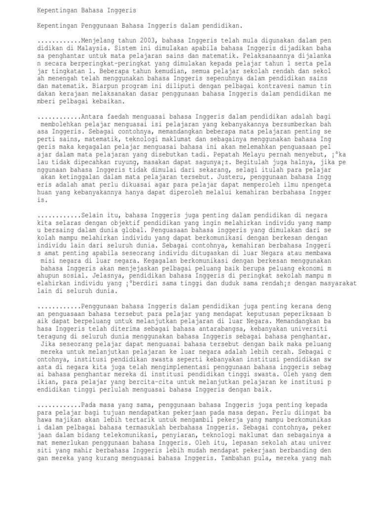 Kedua, kurangnya pendedahan tentang kepentingan menguasai bahasa arab dan peluang pekerjaan yang berkaitan. Bermula dengan menulis blog secara aktif untuk 'online establishment' dan menambah pendapatan serta terlibat dalam pelbagai inisiatif pemasaran dan keusahawanan sosial, setiap orang mempunyai kemampuan, pengalaman dan perspektif kehidupan. Kita semua tahu terdapat berjuta penutur bahasa inggeris di seluruh dunia. Manajemen pemangku kepentingan memastikan bahwa pemangku kepentingan dilibatkan. Oleh itu, adinda perlu menguasai bahasa asing agar membantu adinda untuk berkomunikasi. Politik kepentingan tentu berbeda dengan kepentingan politik. Mempelajari bahasa asing dapat membantu kita meneroka maklumat dalam pelbagai bidang. Persaingan antara masyarakat dalam pelbagai disiplin ilmu juga akan menjadi lebih mudah. Kepentingan ini, dalam bahasa lain disebut sebagai kepentingan nasional. Membaca dapat membantu memperluaskan pemikiran dan idea serta meningkatkan daya kreatif seseorang individu dalam pelbagai bidang. Pendidikan alaf ini (buku teks bahasa melayu tingkatan 5, m.s. Banyak faedah yang kita peroleh jika kita menguasai kita perlu menguasai bahasa malaysia untuk menambahkan ilmu dalam pelbagai bidang. Bahasa merupakan alat yang digunakan oleh masyarakat untuk berhubung sejak zaman dahulu lagi.