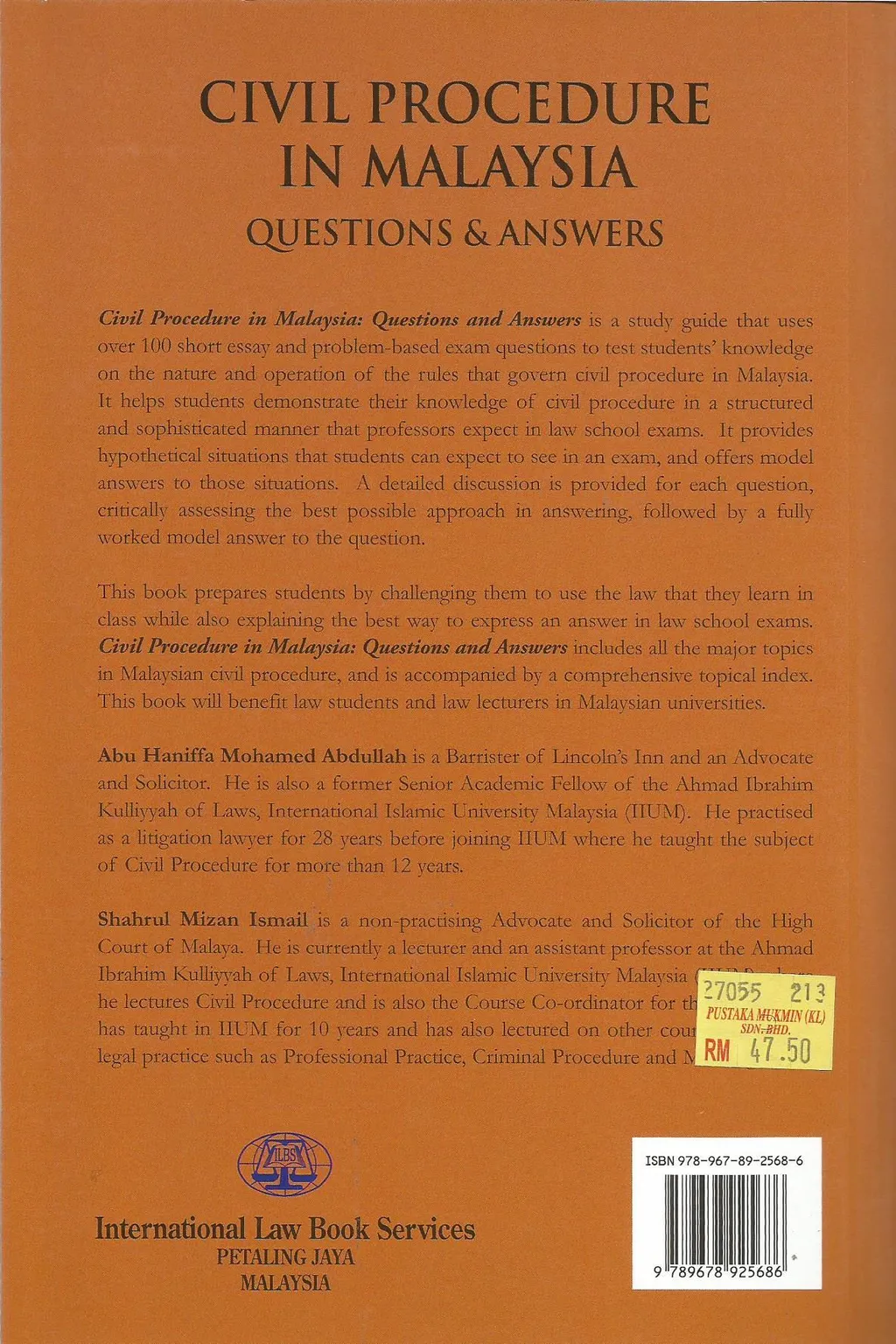 Janab's key to civil (2001). However, the application process has been simplified for foreigners, since now all the necessary information and forms are available in english. Questionnaire of civil servant engagement index (ikpa) 2018. This edition doesn't have a description yet. Lecture notes with cases on the civil procedure in malaysia. If you fulfill the requirements Includes the trademark act 1976 and the specific relief act 1950 and the procedural laws include the order 87 of the rules of the court 2012 and the order 100 of the rules of the high court 1980. General rule on representation in civil proceedings in malaysia. Malaysia is also home to some of the cheapest, affordable, low tuition fees universities in the world. Awareness of emergency procedures among immigration officers. Depositions of witnesses upon written questions. It sets out the procedure for use of depositions in court. He furthered his studies and obtained his llm in international human rights law from the university of nottingham, united kingdom in 2007 and phd from national university of malaysia in 2013.